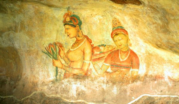 Although the frescoes are classified as in the Anuradhapura period, the painting style is considered unique; the line and style of application of the paintings differing from Anuradhapura paintings. The lines are painted in a form which enhances the sense of volume of the figures. The paint has been applied in sweeping strokes, using more pressure on one side, giving the effect of a deeper colour tone towards the edge. Other paintings of the Anuradhapura period contain similar approaches to painting, but do not have the sketchy lines of the Sigiriya style, having a distinct artists’ boundary line. The true identity of the ladies in these paintings still have not been confirmed. There are various ideas about their identity. Some believe that they are the ladies of the king’s while others think that they are women taking part in religious observances. These pictures have a close resemblance to paintings seen in the Ajanta caves in India.